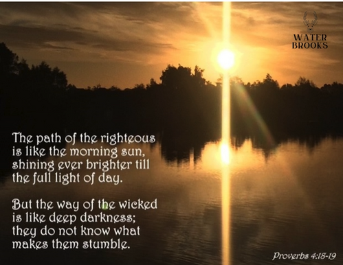 Proverbs 4:18-19 NIV - The path of the righteous is like the morning sun, shining ever brighter till the full light of day. But the way of the wicked is like deep darkness; they do not know what makes them stumble.