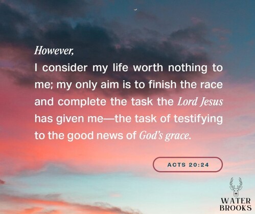 Paul said in Acts 20:23-24, “The Holy Spirit testifies in every city, saying that chains and tribulations await me. But none of these things move me; nor do I count my life dear to myself, so that I may finish my race with joy, and the ministry which I received from the Lord Jesus, to testify to the gospel of the grace of God.”