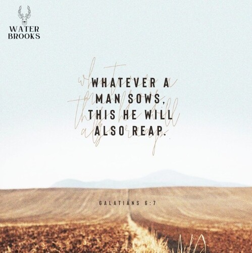 Galatians 6:7, “Don’t be deceived, God’s not mocked, for whatever we sow we’re going to reap. If we sow to the flesh, we’re going to reap destruction if we sow to the spirit we’re going to reap everlasting life.