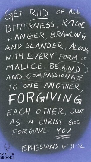29 Do not let any unwholesome talk come out of your mouths, but only what is helpful for building others up according to their needs, that it may benefit those who listen. 30 And do not grieve the Holy Spirit of God, with whom you were sealed for the day of redemption. 31 Get rid of all bitterness, rage and anger, brawling and slander, along with every form of malice. 32 Be kind and compassionate to one another, forgiving each other, just as in Christ God forgave you.