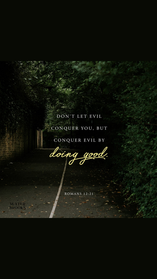 Romans 12:21, “Do not be overcome by evil but overcome evil with good.”