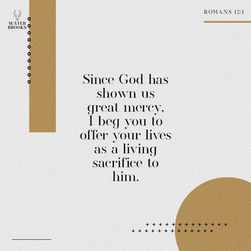 Therefore, I urge you, brothers and sisters, in view of God’s mercy, to offer your bodies as a living sacrifice, holy and pleasing to God-this is your true and proper worship. Do not conform to the pattern of this world, but be transformed by the renewing of your mind. Then you will be able to test and approve what God’s will is-his good, pleasing and perfect will.