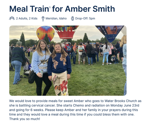 Sign Up to Bring Amber a meal here