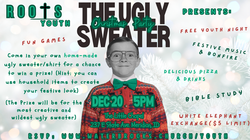 We are having a FREE youth ugly sweater Christmas Party on December 20th, 2025 🎉