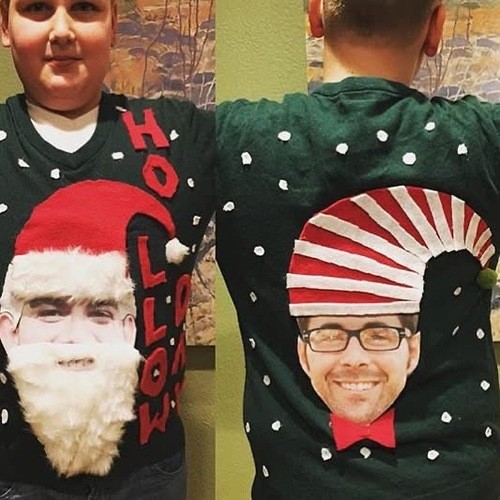 Come in your own home-made ugly sweater/shirt for a chance to win a prize! (Hint: you can use household items to create your festive look)